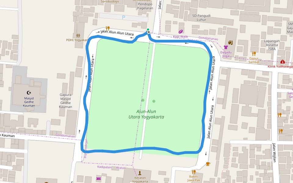 Gang 1 Sosrowijayan Wetan은/는 0.2 km (290-걸음) 주변 입니다. 이 루트의 경도는 대략 0 m 정도이며, 별점쉬움 점을 받았습니다. 이것과 비슷한 루트를 Pacer 앱 에서 찾아보세요!!
