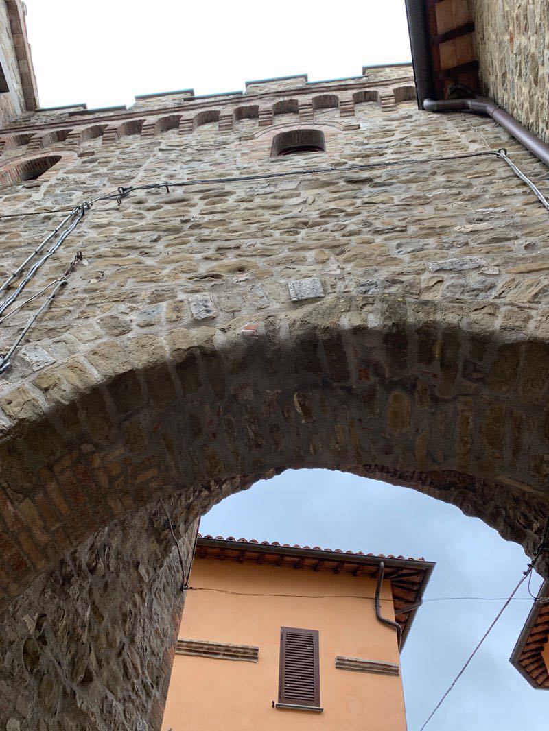 Sentiero facilmente accessibile a tutti è molto interessante, fuori dai normali circuiti turistici; alterne vicende videro coinvolto questo piccolo e tranquillo centro, posto in posizione dominante, a cavallo fra la Val di Rasina a nord e la valle del Chiascio a sud, nelle lotte fra i vari ducati e gastaldati del periodo longobardo. Conserva buona parte di mura, poste in forma quasi circolare in una forma “a diamante”, con il diametro maggiore di circa 100 metri, munito di opere di difesa, tra cui 3 torrioni di sicurezza che formano anche le tre porte del castello: porta Perugina quella di sud, porta del Giglio quella di nord, porta Eugubina quella di ovest.