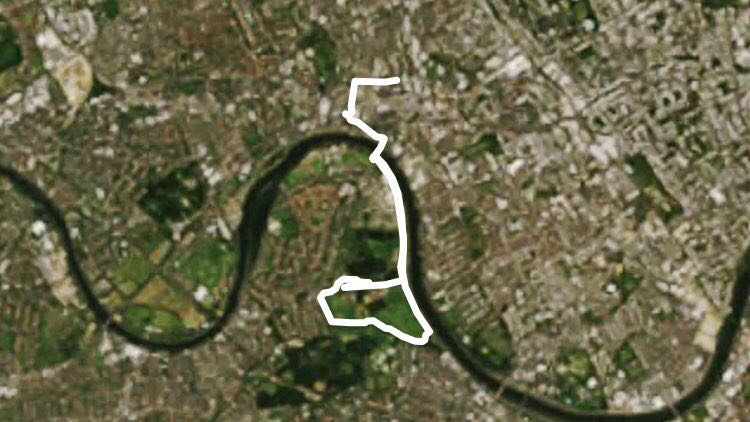 C es una ruta 7.7 km (de 11.000 pasos) ubicada cerca de Hammersmith, Londres, Inglaterra. Esta ruta tiene una elevación cercana a 14 m y tiene una calificación de fácil. Usted puede encontrar más rutas como esta en la aplicación Pacer.