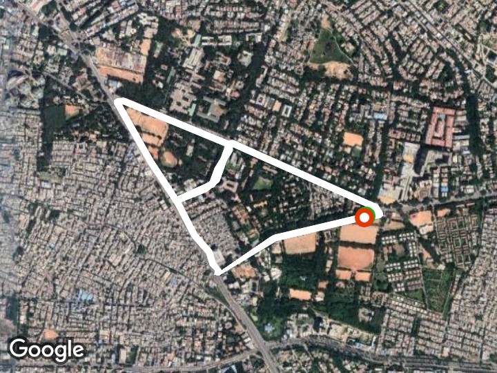 Caminar a lo largo del perímetro de un triángulo rectángulo es una ruta 4.7 km (de 6.500 pasos) ubicada cerca de Koramangala, Bangalore, India. Esta ruta tiene una elevación cercana a 9 m y tiene una calificación de fácil. Usted puede encontrar más rutas como esta en la aplicación Pacer.
