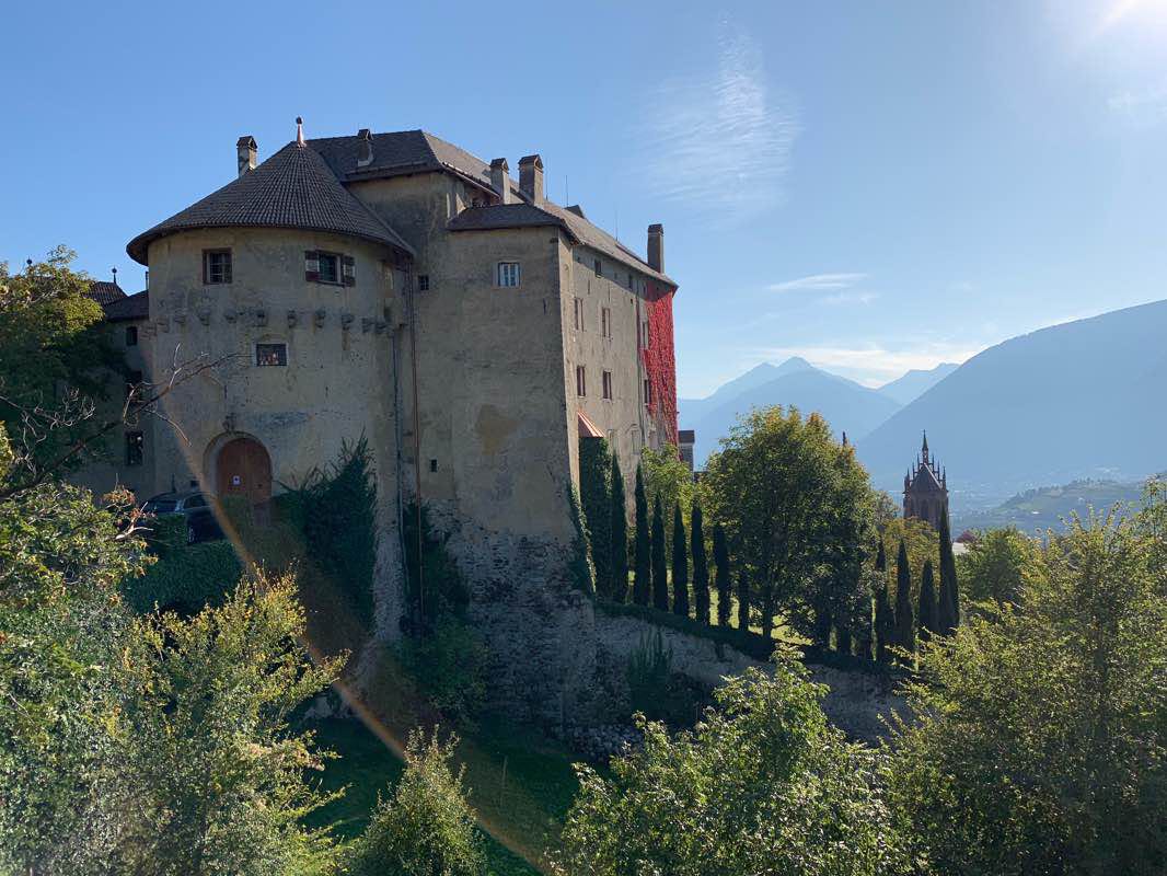 Zuerst besichtigt man in Schenna das Schloss. Dann geht man über den Schlossweg, den Leiterweg, die Plantastrasse und über den Lazagsteig nach Meran. Vor Meran folgt man über den nach Sissi benannten Elisabethpark der Passer entlang ins Zentrum von Meran. Der Weg ist schön und einfach.