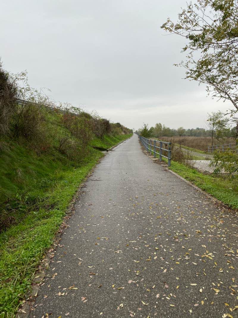 Strada ciclabile, strada a traffico limitato e di nuovo ciclabile, percorso non illuminato ed esposto alle intemperie di vento e pioggia il tratto è comunque piacevole perché è tra la natura e porta fino al fiume trebbia alla fine del ponte Paladini (circa 6k dalla città) dove sottostante la ciclabile ci sono (3) colonne per eventuali emergenze