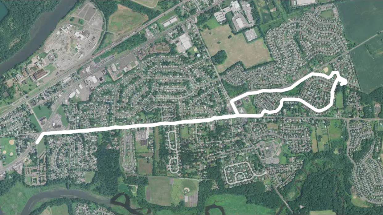 This walk leaves my neighborhood to travel up the length of Columbus Road to Rte 130 and then back ending along the walking path that traverses the Steeplechase Developent.