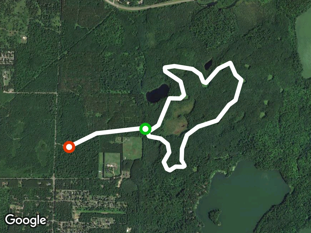 Mic wooded trail winding by both Arbor vitae lakes. Has a couple steep hills.