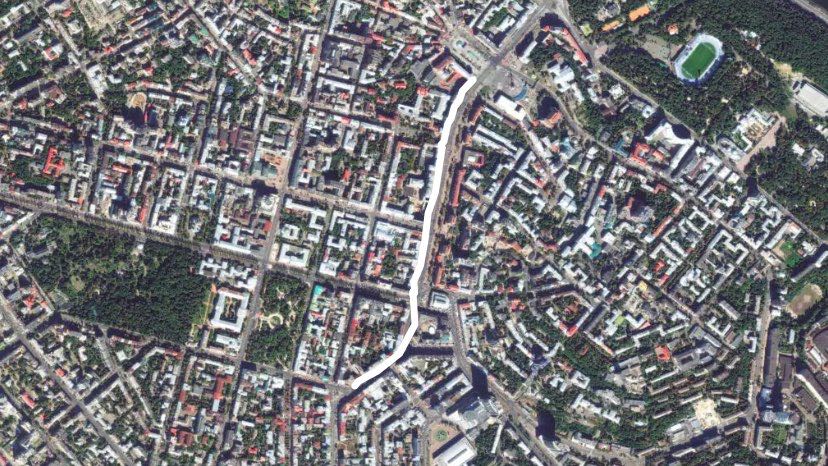 Khreshchatyk (Ukrainian: Хрещатик, [xreˈʃt͡ʃɑtɪk]) is the main street of Kyiv, Ukraine. The street has a length of 1.2 km (0.81 mi). It stretches from the European Square (northeast) through the Maidan and to Bessarabska Square (southwest) where the Besarabsky Market is located. Along the street are the offices of the Kiev City Council which contains both the city's council and the state administration, the Main Post Office, the Ministry of Agrarian Policy, the State Committee of Television and Radio Broadcasting, the Central Department Store (TsUM), the Ukrainian House, and others.