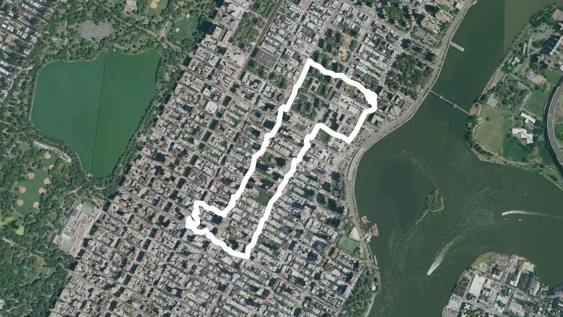 93rd Street runs from Riverside Drive, overlooking the Hudson River, to the East River, through the New York City borough of Manhattan. It traverses the neighborhoods of the Upper West Side, Upper East Side, Carnegie Hill, and Yorkville; the street is interrupted by Central Park. A notable monument to Joan of Arc by Anna Hyatt Huntington stands at the street's western terminus at Riverside Park.