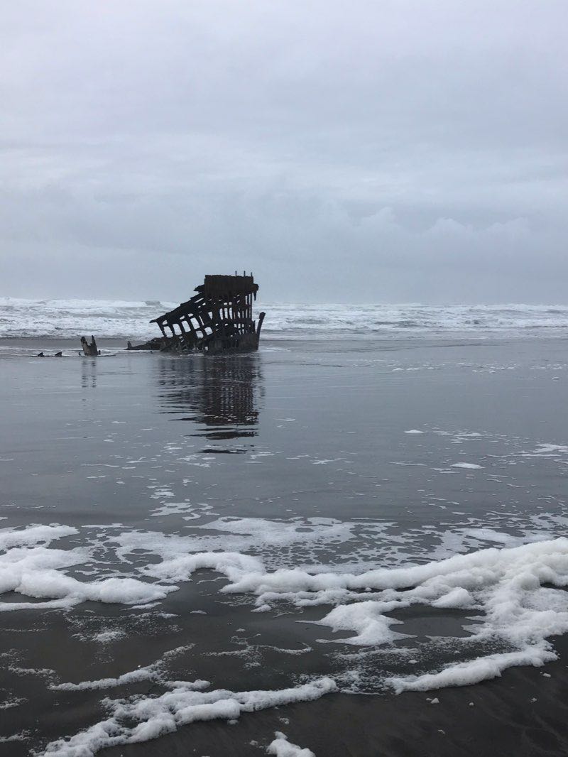 Peter Iredale was a four-masted steel barque sailing vessel that ran ashore October 25, 1906, on the Oregon coast en route to the Columbia River. She was abandoned on Clatsop Spit near Fort Stevens in Warrenton about four miles (6 km) south of the Columbia River channel. Wreckage is still visible, making it a popular tourist attraction as one of the most accessible shipwrecks of the Graveyard of the Pacific.