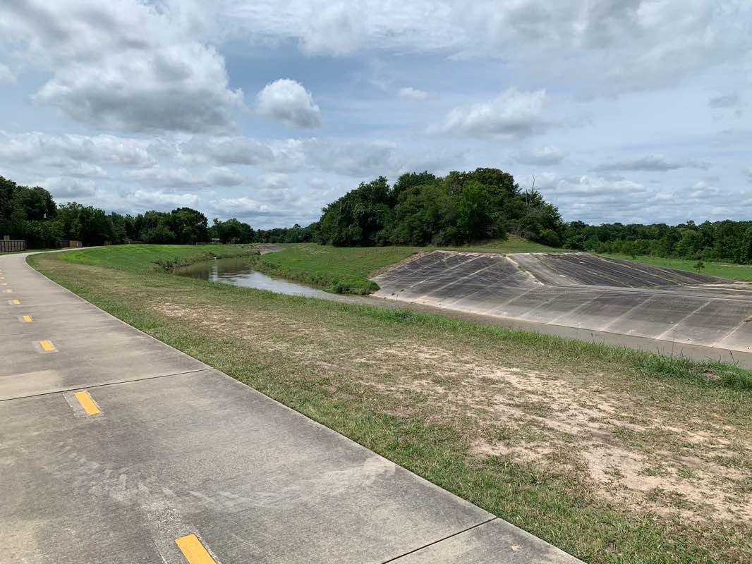 Practicing along the White Oak Bayou on a concrete path