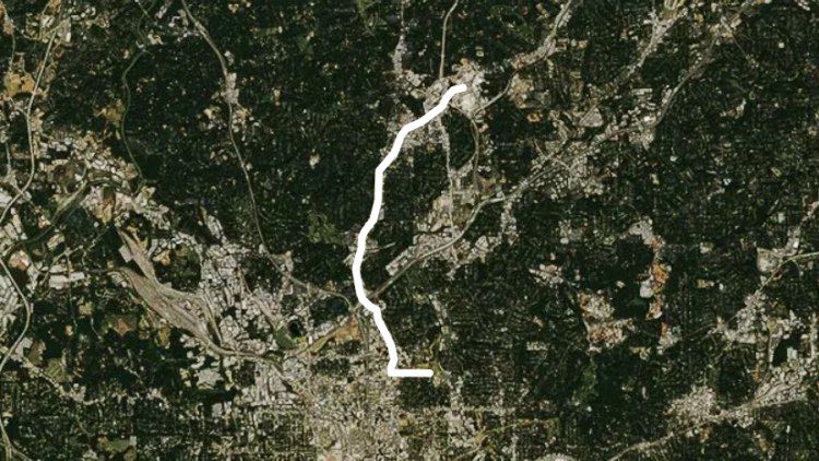 This is the route of the annual Peachtree Road Race, the largest 10K race in the world. The initial track was captured by car down the center of the road, which is where you run/walk on race day when the roads are closed. If you are doing this track outside of the race day, please use the sidewalks. There are sidewalks along both sides of the road for the entire route. Please mind the cross streets and crossing and turning traffic.