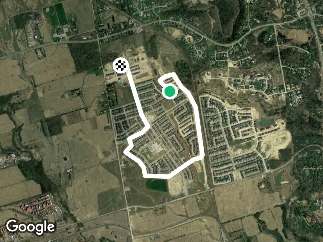 Baron Street 5 km run/walk is a 2.4 mile (5,500-step) route located near Vaughan, Ontario, Canada. This route has an elevation gain of about 42.6 ft and is rated as easy. Find the best walking trails near you in Pacer App.