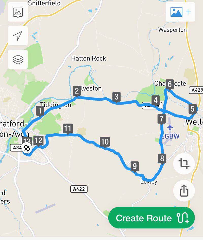 Lovely rural half marathon distance route is a 13 mile (30,000-step) route located near Stratford-upon-Avon, England. This route has an elevation gain of about 226.3 ft and is rated as hard. Find the best walking trails near you in Pacer App.