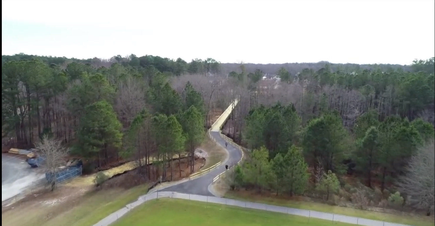 The design for this greenway began in 2010 and now the trail spans more than 2 miles. The portion opened today began construction in April 2019 and features a boardwalk crossing wetlands that connects Old Honeycutt Road Park to the South Lakes subdivision and includes connectivity to Williow Springs High School and South Lakes Elementary School.