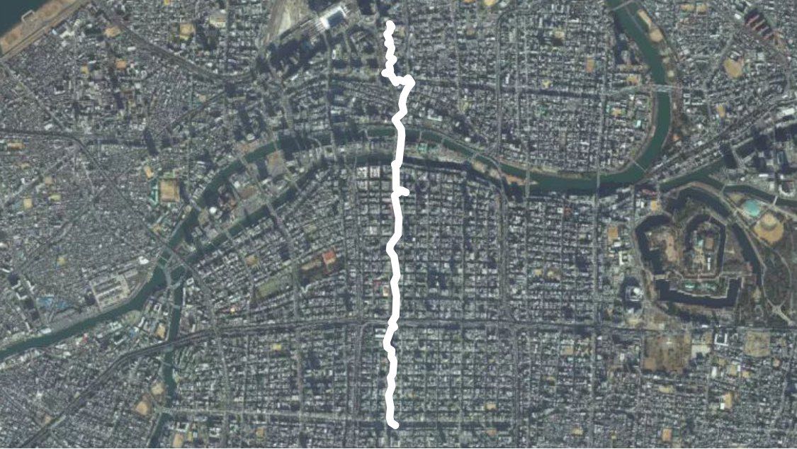 GPSの軌跡はズレてますが直線です