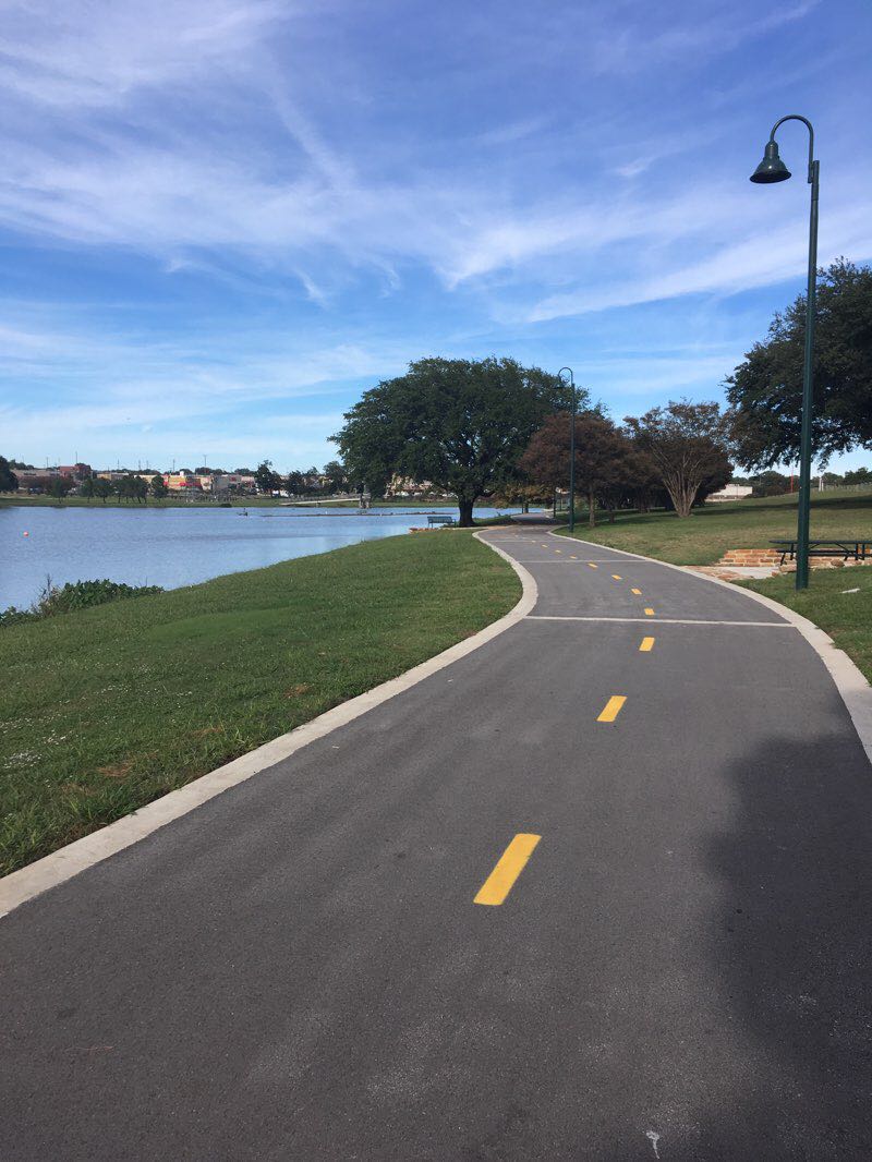Easy mid town run/ walk on Bachman lake. Great track. Have recently updated it. Never really crowded. Manual in place exercise machines. No graffiti or damage. Family friendly. A tad noisy because of Love Field, otherwise nice little 5k around the lake.
