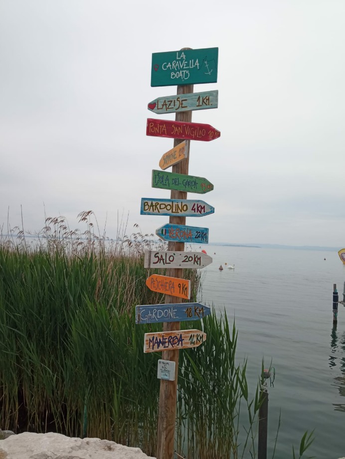 Parcheggio in prossimità della statale e di alcuni grandi negozi. Un po' di discesa e si entra a Lazise ...da qui in poi tutto in piano. primo km nel centro storico del Comune e poi passeggiata lungo il Lago di Garda con molte panchine x godersi il panorama è riposare un po'. Passeggiata da relax 😉