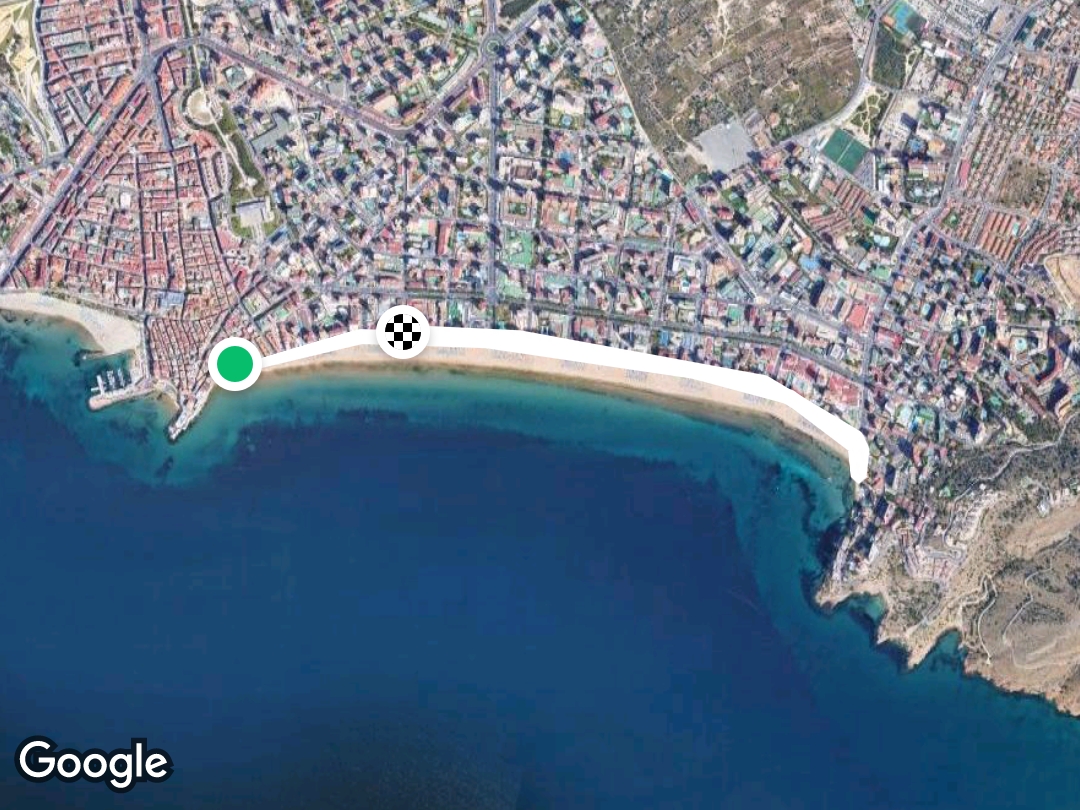Beach round and round. is a 2.4 mile (5,500-step) route located near Benidorm, Spain. This route has an elevation gain of about 88.6 ft and is rated as easy. Find the best walking trails near you in Pacer App.