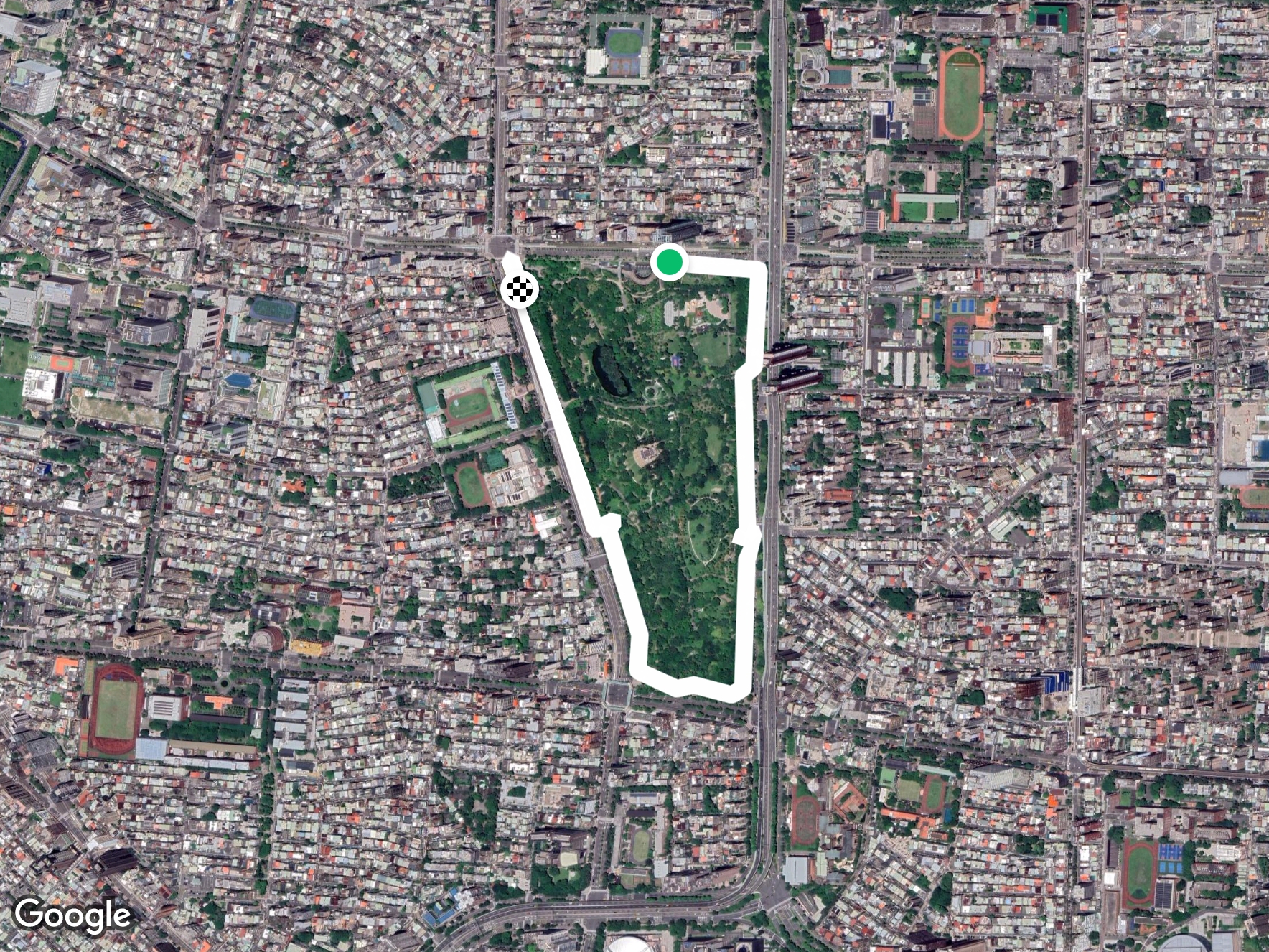 Daan Forest Park (Chinese: 大安森林公園) is a public park near the centre of the Da'an District of Taipei, Taiwan. The park occupies twenty-six hectares and is bordered on its north, south, east and west by Xinyi Road, Heping Road, Jianguo Road and Xinsheng Road, respectively. The park is used by residents of Taipei as a green activity space and for various outdoor activities.