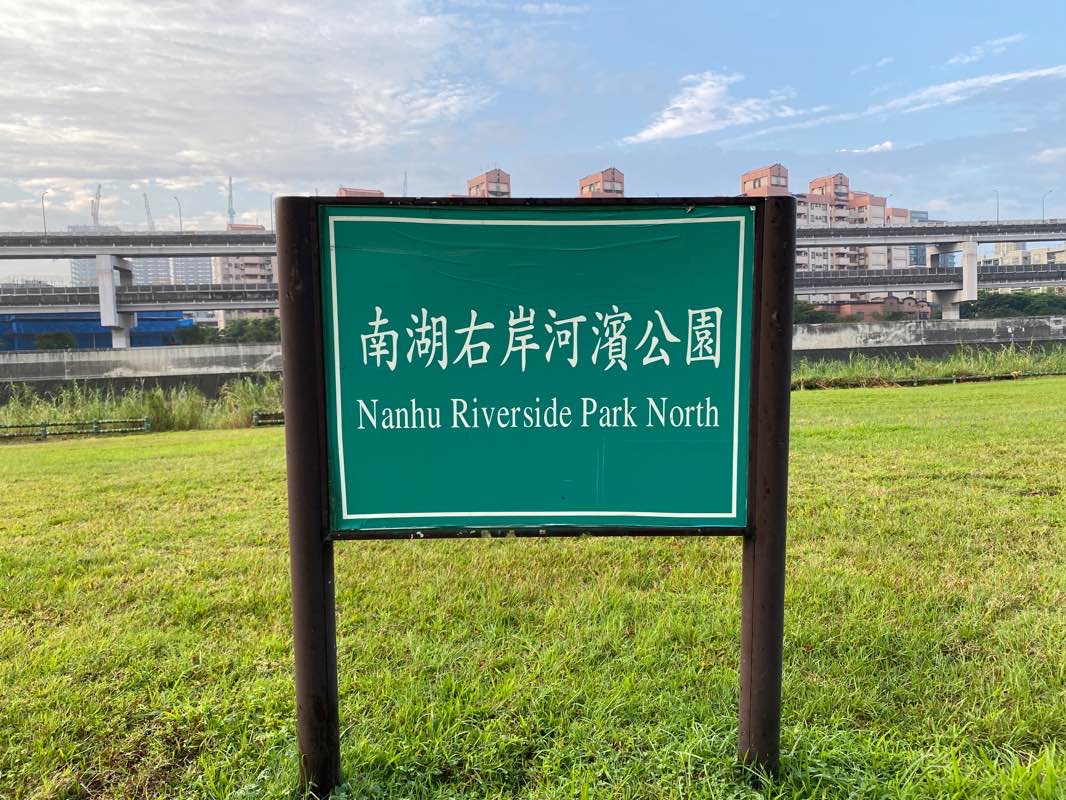 The Nanhu Riverside Park (Chinese: 南湖河濱公園; pinyin: Nánhú Hébīn Gōngyuán) is a park along the Keelung River in Taipei, Taiwan. The park is divided into two parts by the river, the northern part which is located in Neihu District on the right side of the river bank and the southern part which is located in Nangang District on the left side of the river bank.