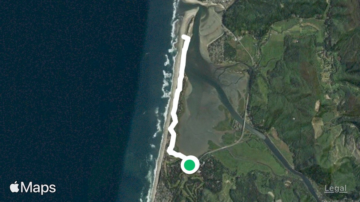 Trail and salishan road to the end of the spit and back