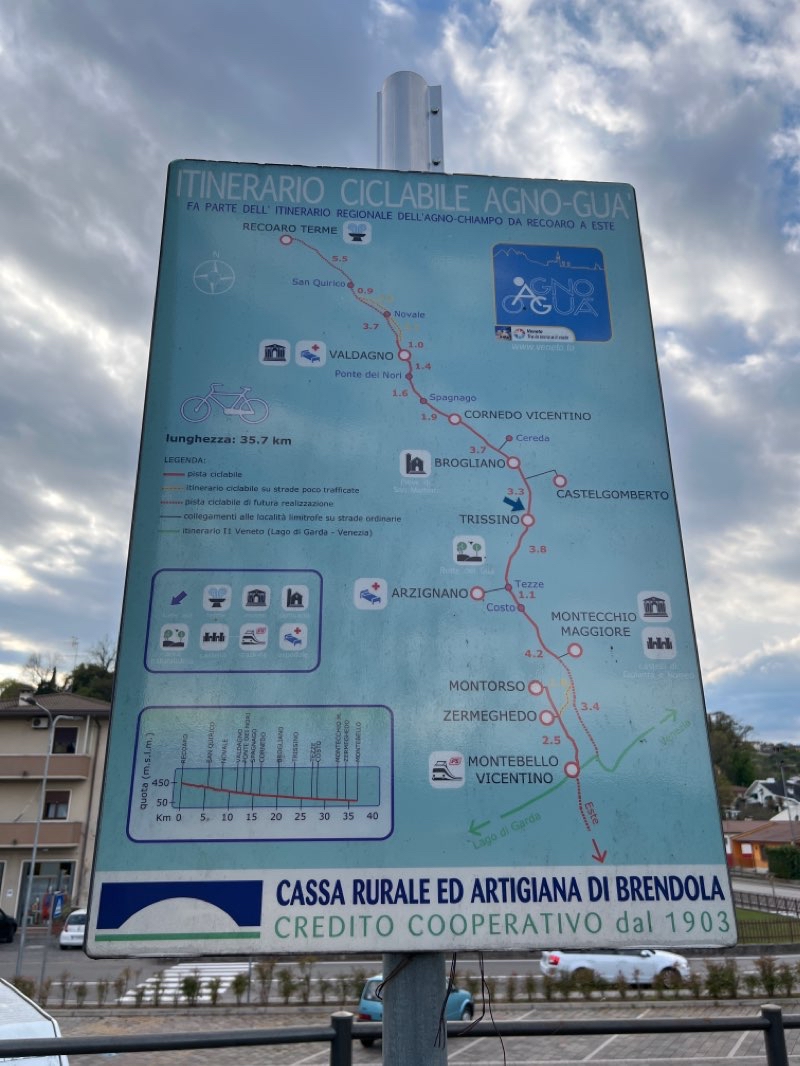 AGNO-GUA CYCLING ITINERARY is a 5 mile (12,000-step) route located near Trissino, Vicenza, Italy. This route has an elevation gain of about 157.4 ft and is rated as easy. Find the best walking trails near you in Pacer App.