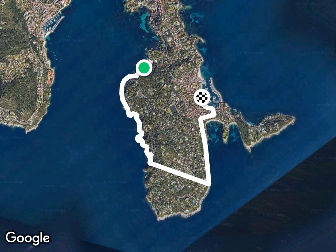 Saint-Jean-Cap-Ferrat is a 2.9 mile (6,500-step) route located near Saint-Jean-Cap-Ferrat, Alpes-Maritimes, France. This route has an elevation gain of about 95.1 ft and is rated as easy. Find the best walking trails near you in Pacer App.