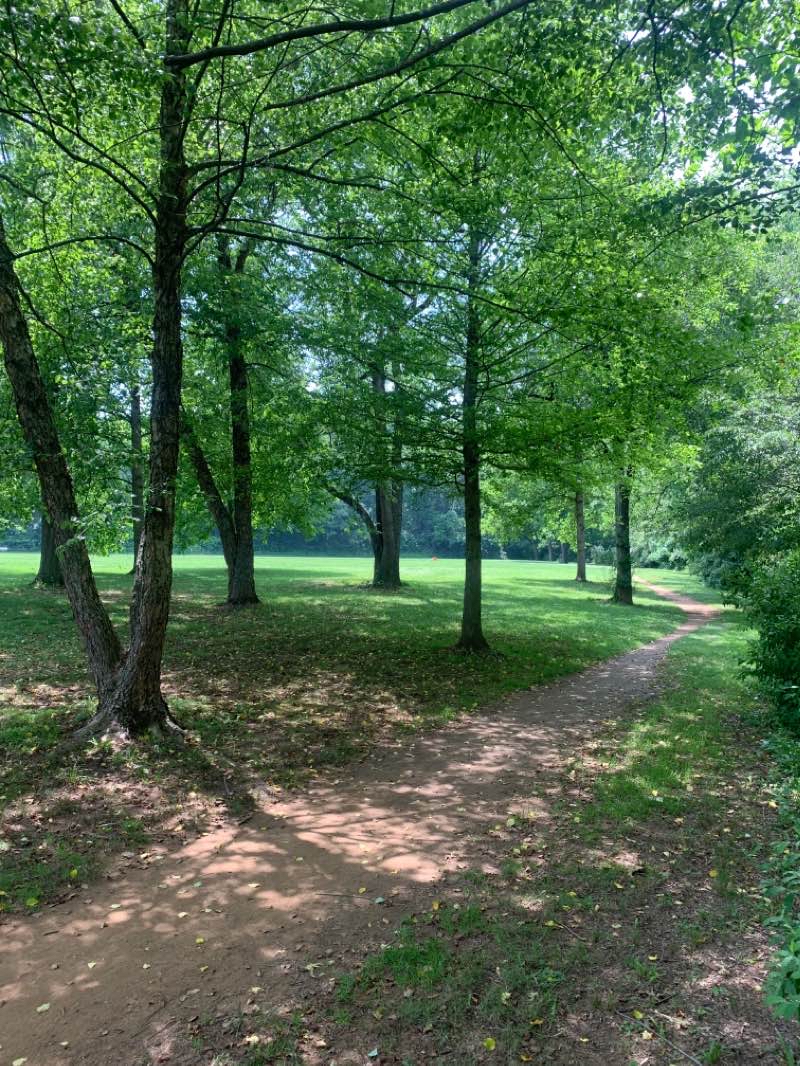 Park in the lot across from the pool. Head west past the picnic shelter and take the bridge across the river. Start the Woods West loop by either heading to the right along the trail, or go straight up the hill and take the second trail on the right. The trail has many off shoots that go to the river for fishing and wading. There are also paths that cut across the woods, but it’s clear which trail is the main trail. Enjoy the shade!