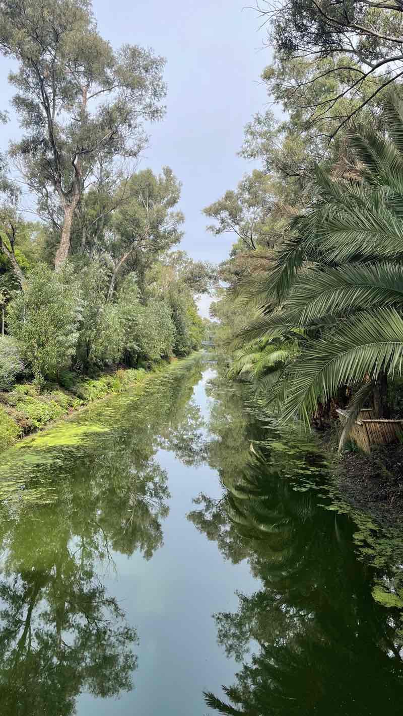 Es un canal de agua 💦 corriente donde hay patos 🦆, esta muy cuidado por jardineros de la alcaldía 👩🏻🌾 el sendero es prácticamente plano, limpio hay para trotar y correr y en la parte de abajo puedes caminar tranquilamente .. hay personas con perros 🐶 🐕 pero los llevan con Correa y se hacen responsables de sus desechos, al final de tu recorrido puedes tomar un delicioso té 🍵 o café ☕️ una chapata o ensalada 🥗 es en un par de locales qué hay en la ruta 🧭… en ellos puedes hacer uso de los sanitarios también ! La Ruta es 🧭 recomendable !