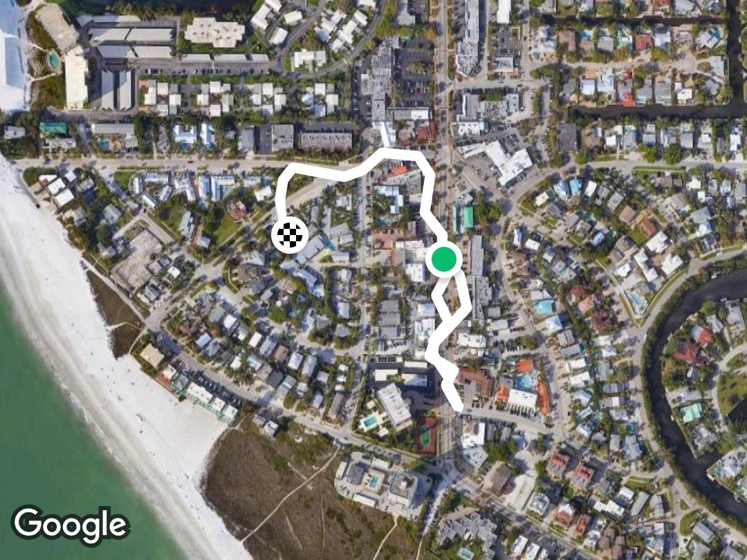 Ocean beach is a 0.5 mile (1,000-step) route located near Siesta Key, Florida, USA. This route has an elevation gain of about 0 ft and is rated as easy. Find the best walking trails near you in Pacer App.