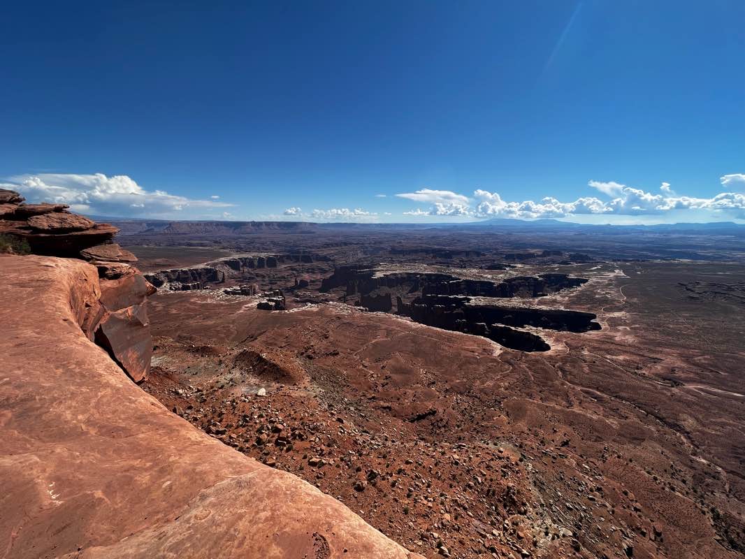 Grand view trail in Canyon lands NP is easy with couple of trees for shade. Breath taking view from whole trail. Half of the billion years of history is right in front of you.