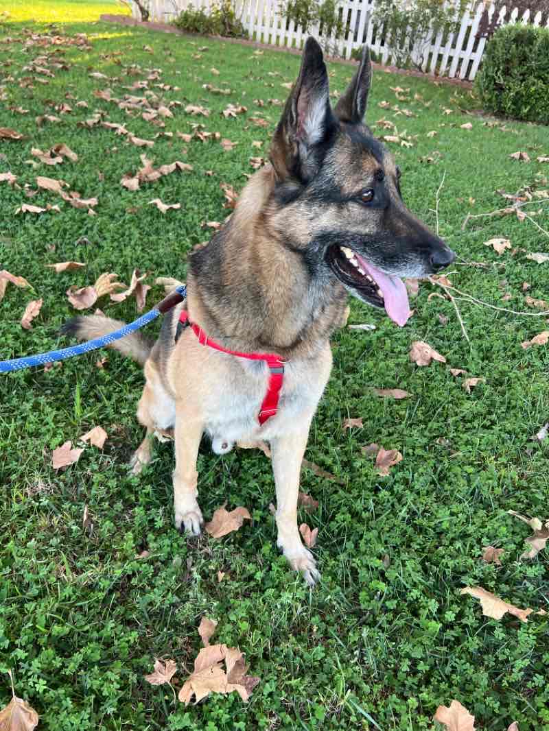 Happy to have some company, Axl wandered around with me until I had completed some chores. Then he got excited to go for a walk. I guessed pretty well on Axl’s girth measurement. The place where I got the harness set it up to fit the size I offered. It fit nicely. And it worked well for walking with him. There was one situation where we went into the street to let an older guy with his smaller dog stay on the sidewalk. As we passed, Axl growled unprovoked. I was surprised, told him “STOP” and pulled up on the leash and he stopped immediately. We proceeded on as if nothing had happened. He dropped a big formed poop easy to pick up. He peed/marked plenty. Last night he woke me up at about midnight to go out. I heard lots of flatulence noise and found a few dried sqyirts on the ground this afternoon. Anyway he is happy and ready for dinner.