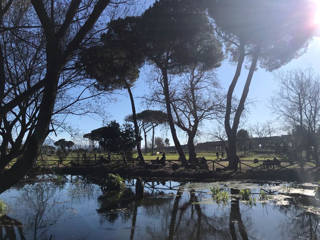 Percorso storico al Parco degli Acquedotti, costeggiando il ruscello, il laghetto e un tratto dell’originale Via Latina, tra ville e acquedotti dell’antica Roma. Pura poesia, soprattutto al tramonto.