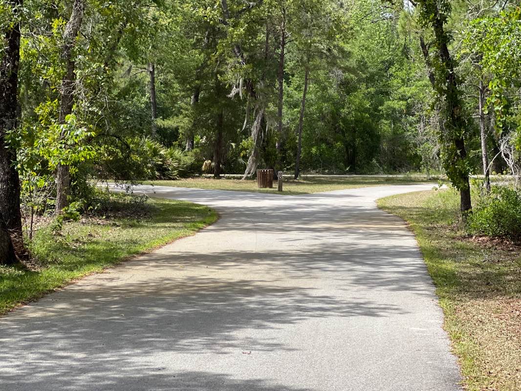 Paved and unpaved trails. Plenty of parking including disabled parking. Clean bathrooms. Picnic pavilions and playgrounds for children. Paved trails are 5k+. Great for hiking, running, or bicycling. Very scenic and well maintained.