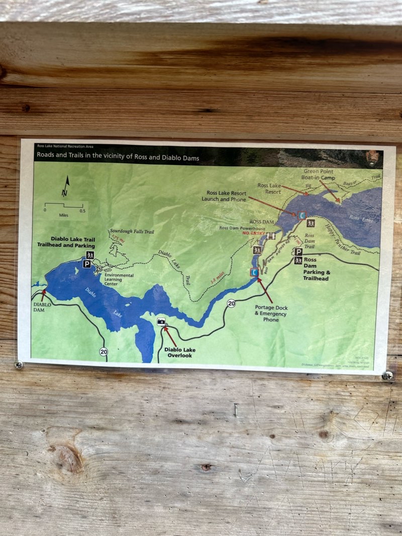 First dam at the north cascades national park. It separates Ross lake and Diablo lake. This trail is from the parking lot on US 20 and the dam.