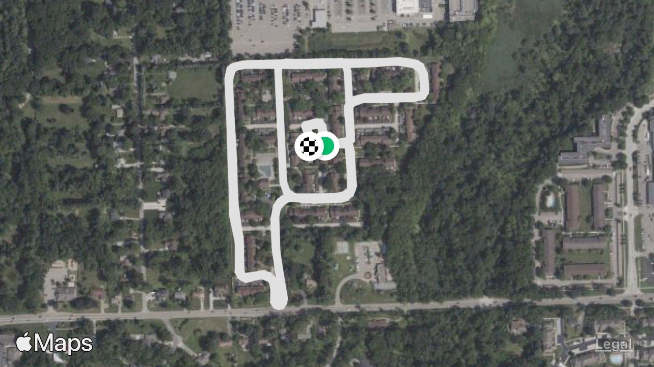 My condo complex. Slight elevation changes and different routes to mix it up.