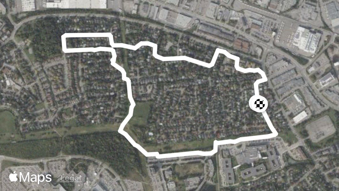 This easy walk is on quiet streets without sidewalks, through Balena Park & down a very walkable hydro corridor. There are benches in the park & also one in the hydro corridor.