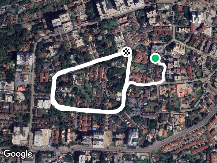 Route near Kileleshwa is a 3.2 mile (7,500-step) route located near Nairobi, Kenya. This route has an elevation gain of about 55.8 ft and is rated as easy. Find the best walking trails near you in Pacer App.