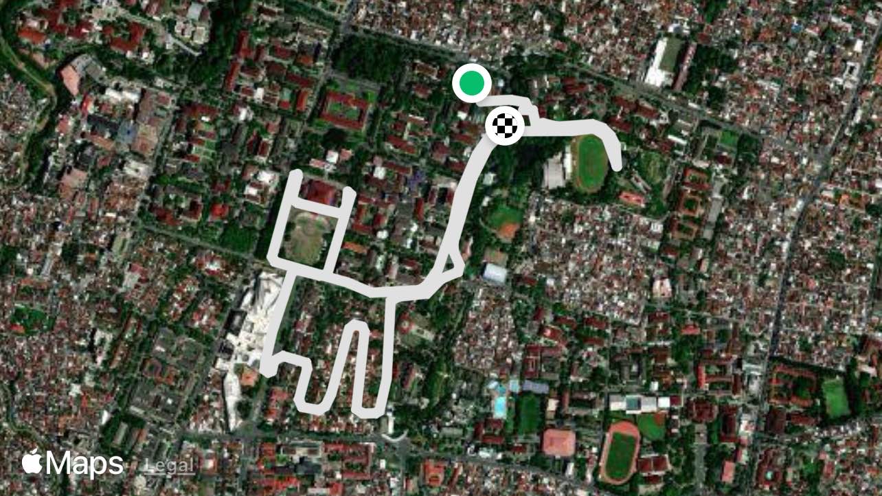 UGM cat track is a 3.1 mile (7,000-step) route located near Sleman, Yogyakarta, Indonesia. This route has an elevation gain of about 59 ft and is rated as easy. Find the best walking trails near you in Pacer App.