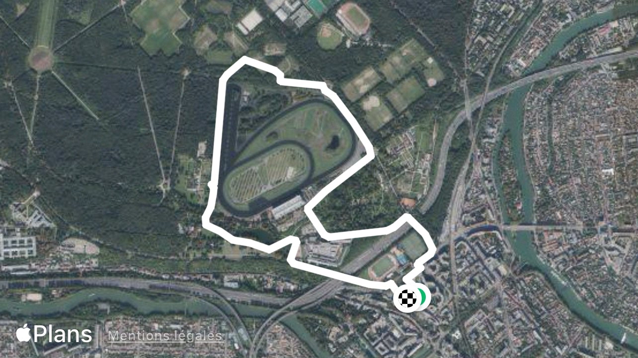 A little Sunday warm-up - Vincennes racecourse is a 3.1 mile (7,000-step) route located near Saint-Maurice, Val-de-Marne, France. This route has an elevation gain of about 108.2 ft and is rated as easy. Find the best walking trails near you in Pacer App.