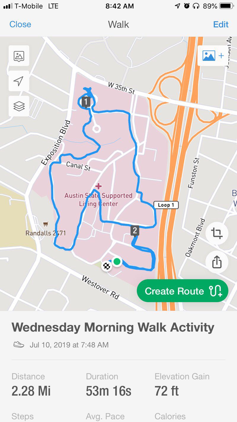 The walk is a 2.3 mile (5,000-step) route located near Austin, Texas, USA. This route has an elevation gain of about 72.2 ft and is rated as easy. Find the best walking trails near you in Pacer App.
