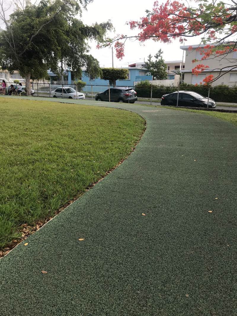 Pista, parque infantil, clases de zumba, canchas de baloncesto y gazebos.