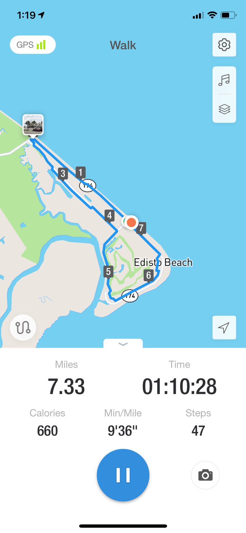 Biking (or walking) around Edisto Island is a 7.5 mile (17,000-step) route located near Edisto Island, South Carolina, USA. This route has an elevation gain of about 49.2 ft and is rated as medium. Find the best walking trails near you in Pacer App.