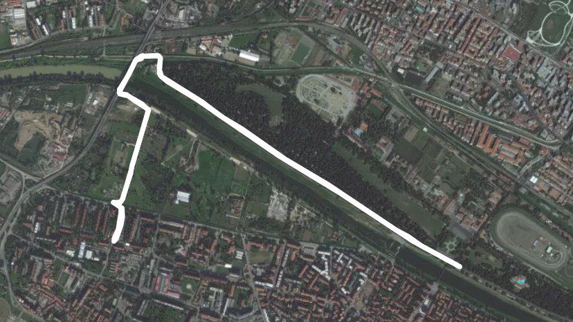 Percorso nel Parco delle Cascine costeggiato dal Fiume Arno