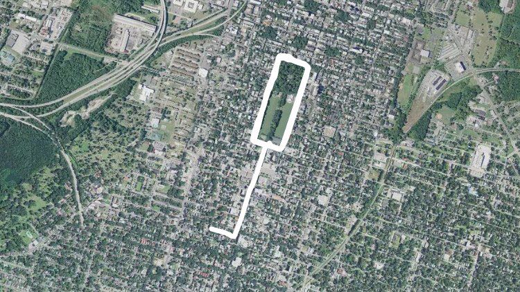 Forsyth Park is a large city park that occupies 30 acres (0.12 km2) in the historic district of Savannah, Georgia. The park is bordered by Gaston Street on the North, Drayton Street on the East, Park Avenue on the South and Whitaker Street on the West. It contains walking paths, a children's play area, a Fragrant Garden for the blind, a large fountain, tennis courts, basketball courts, areas for soccer and Frisbee, and home field for Savannah Shamrocks Rugby Club.